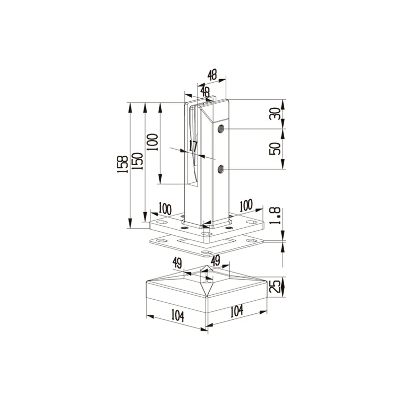 Featuring a zig-zag stair–adapted geometry, this Adjustable Glass Spigot is directly anchored to stair treads or stringers using high-strength mechanical fasteners. The optimized clamping structure ensures accurate glass alignment, making it ideal for projects requiring strict tolerances and consistent load distribution.